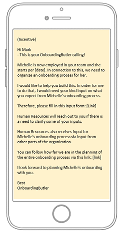 OnboardingButler is uniquely designed to help you, as the hiring manager, to be constantly focused and motivated to solve the tasks around "Good Onboarding Management". In the information system ("OnboardingButler Dashboard") you will find a number of real-time information, which tells you in detail how it goes with the different onboarding processes you're working with. Delivering suggestions to how to even further strengthen your onboarding management. Always forward-looking - always supportive - all the time based on deep onboarding professionalism.
